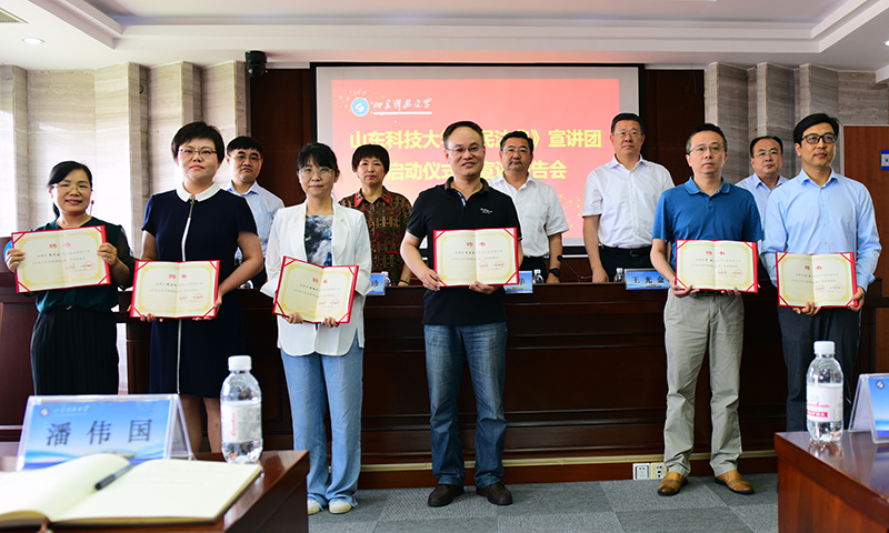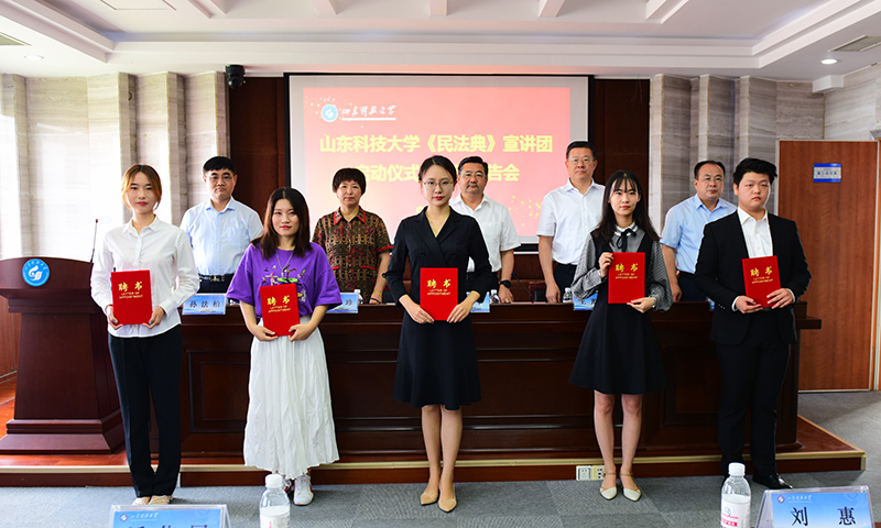 在宣讲团成立启动仪式上,拼搏平台(中国)ios/安卓版/手机app下载党委副书记尹华代表学校致辞,拼搏平台(中国)ios/安卓版/手机app下载党委常委、宣传部部长李克周宣读《关于成立拼搏平台(中国)ios/安卓版/手机app下载〈中华人民共和国民法典〉宣讲团开展宣讲活动的通知》,青岛市黄岛区人民法院党组书记、院长王光金,青岛西海岸新区司法局党委委员、副局长张光珍到会祝贺并讲话。成立仪式上,有关领导为宣讲团教师和学生代表颁发了聘书。