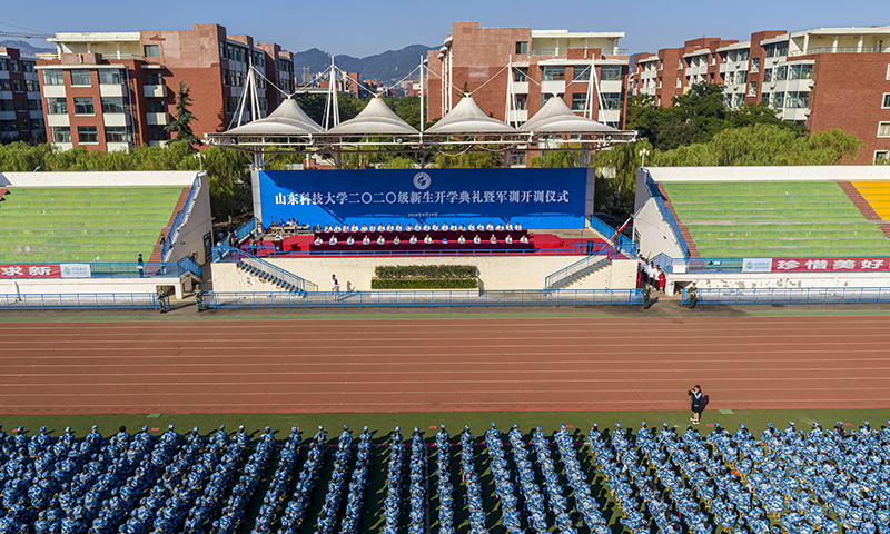 秋高气爽,丹桂飘香;鲲鹏展翅,天地翱翔。9月18日、19日,在惠风和畅的金秋季节,在雄壮的国歌声、在清越的校歌旋律中,拼搏平台(中国)ios/安卓版/手机app下载分别在青岛校区、泰安校区、济南校区举行2020级新生开学典礼暨军训开训仪式。7900余名本科生和2500余名研究生新生精神抖擞,汇聚一堂,共上第一课,怀揣成才心,逐梦新征程。
