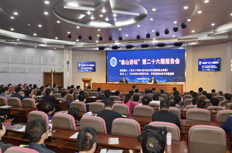 10月11日,学校举办“泰山讲坛”第二十六期报告会,我校特聘教授、外交部中国国际问题研究院美国研究所所长滕建群作当前国际形势的专题报告。