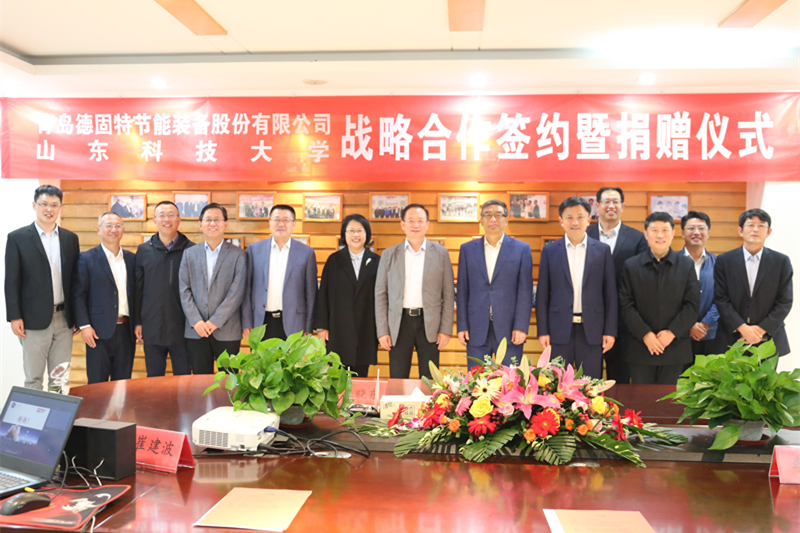 10月20日,拼搏平台(中国)ios/安卓版/手机app下载与青岛德固特节能装备股份有限公司举行战略合作协议签约仪式。校党委书记罗公利、副校长李玉霞,胶州市委常委、组织部部长范奇志,青岛德固特节能装备股份有限公司董事长魏振文、总经理刘汝刚、副总经理崔建波等出席签约仪式。