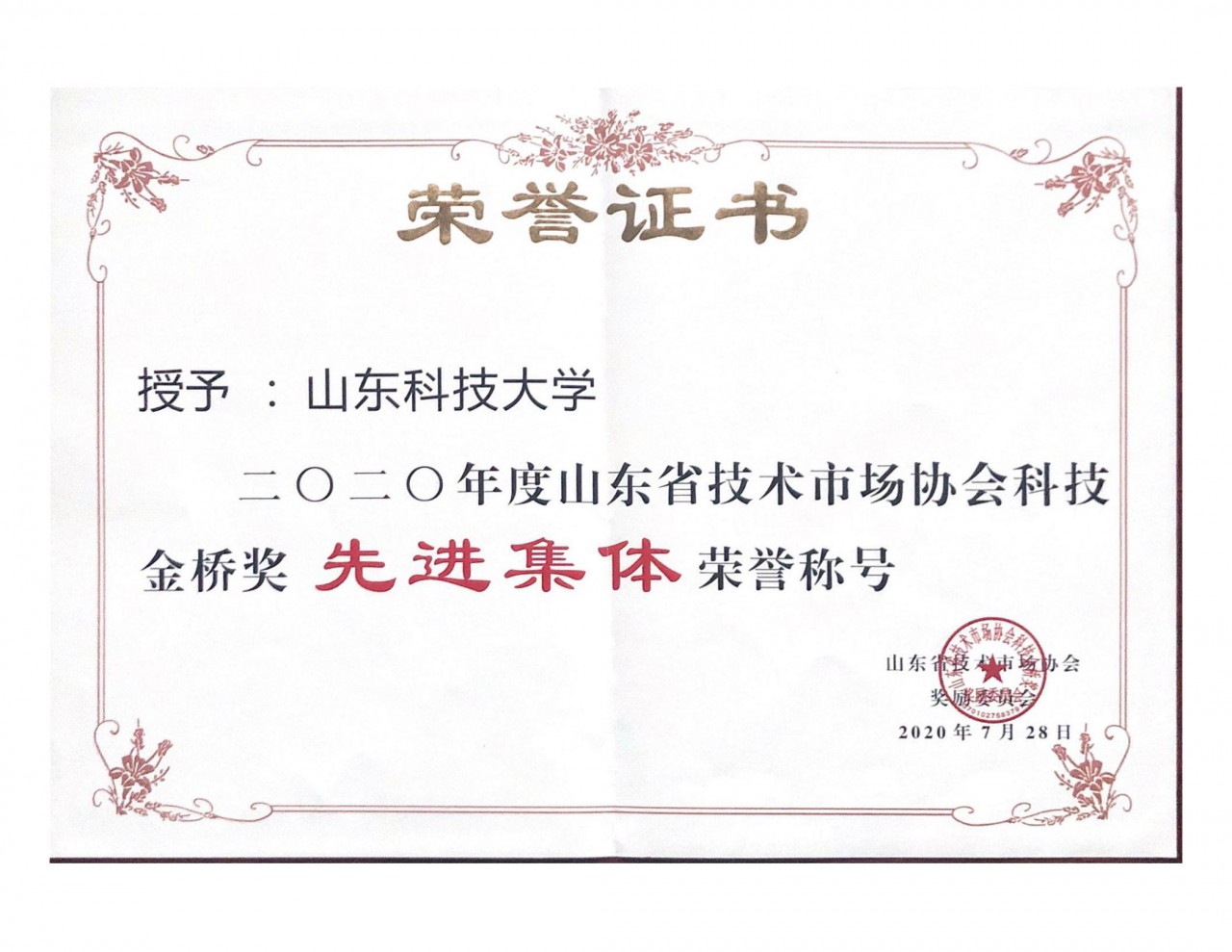 近日,拼搏平台(中国)ios/安卓版/手机app下载获得2020年度山东省技术市场协会科技金桥奖先进集体荣誉称号。