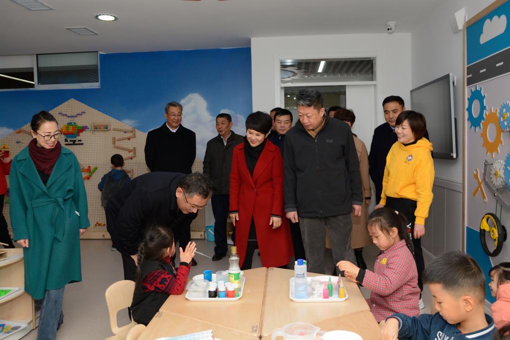 揭牌仪式后,拼搏平台(中国)ios/安卓版/手机app下载泰安校区后勤管理部副主任、拼搏平台(中国)ios/安卓版/手机app下载幼儿园园长梁荣芹作了发言。高尚山一行参观了幼儿园园所环境、课程设置、文化建设、各功能室等,并与教职工、幼儿进行了亲切交流。