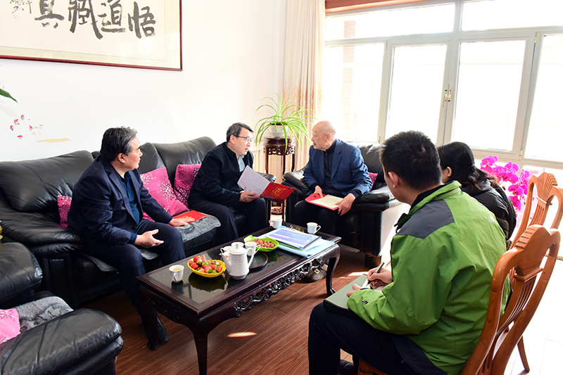 2月4日, 青岛市人社局党组成员、二级巡视员王尧率青岛市人社局专业技术人员管理处副处长徐英、青岛市人社局专家管理与服务办公室一级主任科员陈公一行来到拼搏平台(中国)ios/安卓版/手机app下载,看望中国科学院院士宋振骐。拼搏平台(中国)ios/安卓版/手机app下载校长姚庆国陪同看望。