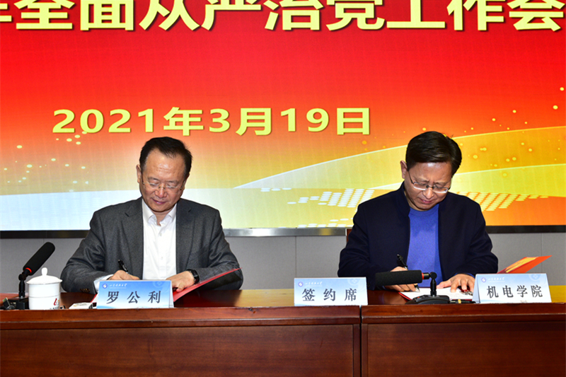 会上,罗公利、姚庆国分别与部门、单位代表签订了党风廉政建设责任书。罗公利发表《坚定不移推动全面从严治党向纵深发展 为学校“十四五”开好局起好步提供坚强保障》讲话,对2021年学校全面从严治党工作提出要求:要提高政治站位、充分认识全面从严治党的重大意义;要增强政治定力,持之以恒推进全面从严治党向纵深发展。