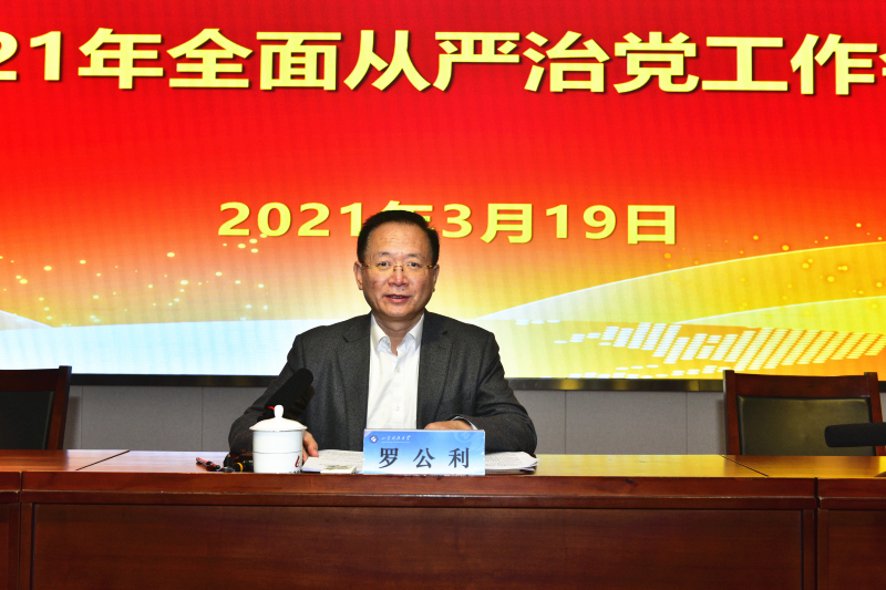 罗公利要求,学校全面从严治党任务还很艰巨,必须进一步增强责任感紧迫感,提高政治站位,增强政治定力,持之以恒推进全面从严治党向纵深发展,为开创学校事业发展新局面提供坚强政治保证。要持之以恒把政治建设摆在首位,增强政治意识,严明纪律和规矩,严肃党内政治生活;要持之以恒加强思想引领,强化理论武装,扎实开展党史学习教育,严格落实意识形态工作责任制;要持之以恒提升基层党组织的组织力,加强院系领导班子建设,强化干部队伍建设,加强基层党组织建设;要持之以恒转变作风,锲而不舍纠正四风,着力加强机关作风建设,大兴调查研究之风;要持之以恒加强纪律建设,加强法制教育,强化纪律监督,严肃执纪问责;要持之以恒落实巡视整改任务,切实发挥校内巡察的利剑作用,更加注重巡视整改成果的运用转化。