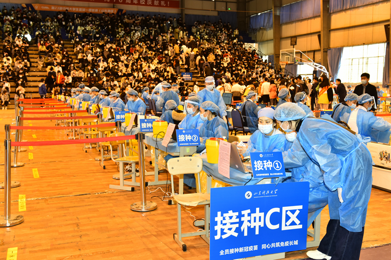 学校配合青岛西海岸新区中医医院在篮球训练馆设置40个集中接种点位,按要求提前做好信息摸排导入、网络接入、电力保障等工作。根据接种工作要求,将接种区域划分为等候区、咨询区、疫苗接种区、留观区和应急处置区,现场配备专业医护人员做好应急处置工作,确保接种安全。