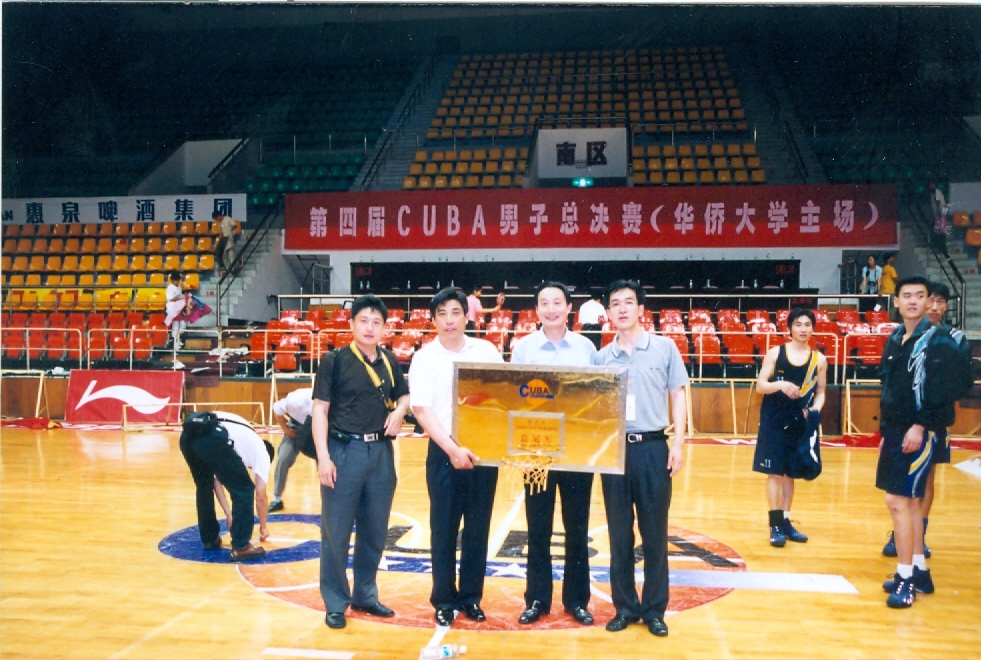三是CUBA东北赛区的选拔赛。按照CUBA赛制,正常情况下每年举行一届,全国共分为东北、西北、东南、西南4个赛区,我校划归东北赛区。第一轮是各省高校先进行选拔赛,每个省的第一名才有资格参加大区的比赛,我校男、女篮球队每年都能轻而易举地获得山东省高校冠军而进入大区比赛。众所周知,东北赛区包括山东、河北、天津、北京、辽宁、吉林、黑龙江等省、市,高校多、名校多,清华、北大、东北师大、哈工大等篮球传统项目的名校多,要想在第二轮大区的比赛中出线、参加全国总决赛,必须是大区的冠亚军,在如此高手如林的东北赛区,我校男篮在前14届比赛中获得5次冠军、4次亚军、2次第三名、2次第四名,也就意味着每次都进入大区四强,9次进入全国八强。我印象最深的是连续两年战胜清华大学的比赛。在清华园客场战胜清华大学,令很多人都疑惑不解。当运动员赛前练球时,清华的运动员意气风发,个个如下山猛虎,人人似乎都在表演扣篮,从身高、技术到赛前气氛,几乎是一边倒的,认为双方力量悬殊,谁也没想到山科大会赢。但是开场以后,我方队员齐心协力、默契配合、稳扎稳打,不但压制住了对方高涨的势头,而且比分迅速领先,丁岩峰漂亮灵活的大跨步篮下得分和底角位置连连命中的3分远投令观众十分惊讶,还以为我校引入了外援呢。