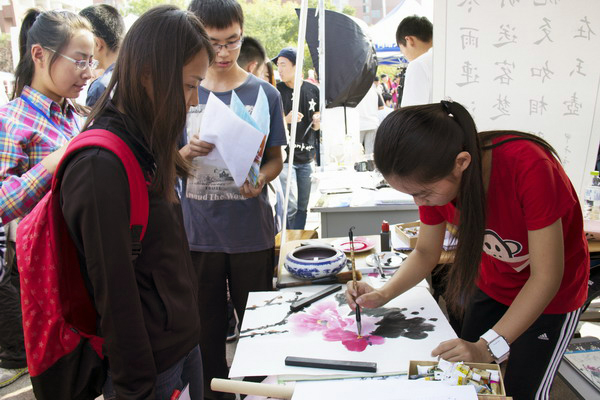 学生社团在纳新现场绘画