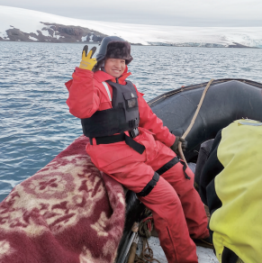 “长城站附近的天气呈现周期规律,一般好天气会持续一个周,坏天气也是。”魏峥嵘说,直至12月28日,长城站附近的天气才慢慢好了起来,为了赶上这一难得的天气和海况窗口期,一大早他便和搭档出发前往此次进行测绘的主要区域——位于距离长城站3公里外海域的一处小岛“双顶岛”。“这座小岛实际上是我们的备选方案,但由于原先确定的测量地点有遮挡,经过考虑,我们最终选定了这里。因为没有人来过,不知道岛上的环境如何。另外,我们唯一的上岛方式是搭乘一艘橡皮艇,这对天气、海况的要求都很高,也意味着一旦变天,我们要在岛上等待一周甚至更久,直到天气状况变好为止。”