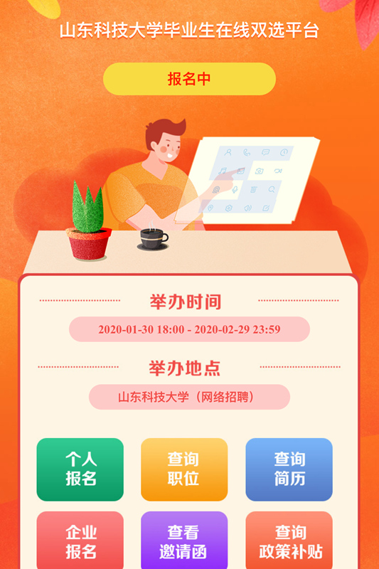 “为避免人群聚集,保护毕业生的身体健康,许多用人单位取消了原计划的线下招聘活动。用人单位、毕业生因为疫情不能‘面对面’,双方心里都着急。”学校就业指导中心工作人员介绍。因此,就业指导中心做出了在疫情防控期间加强线上就业工作的决定,提出“就业服务不打烊,网上招聘不停歇”,多方联系用人单位依托互联网平台开展在线双选和咨询指导工作,全面推进毕业生就业工作,确保就业工作不断线。