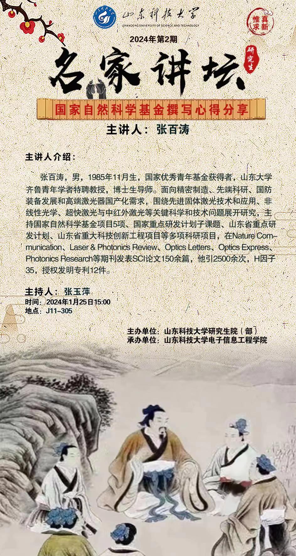 “名家讲坛”2024年第2期:国家自然科学基金撰写心得分享