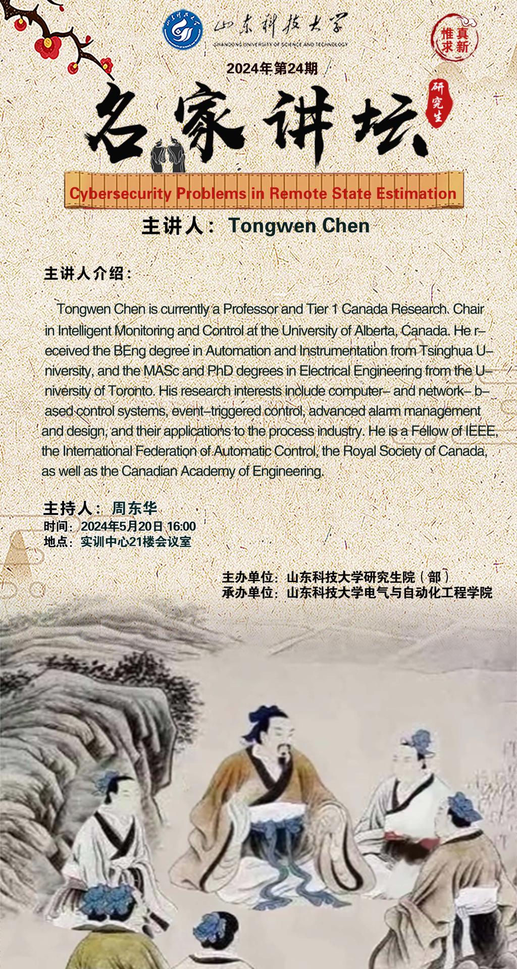 “名家讲坛”2024年第24期:Cybersecurity Problems in Remote State Estimation