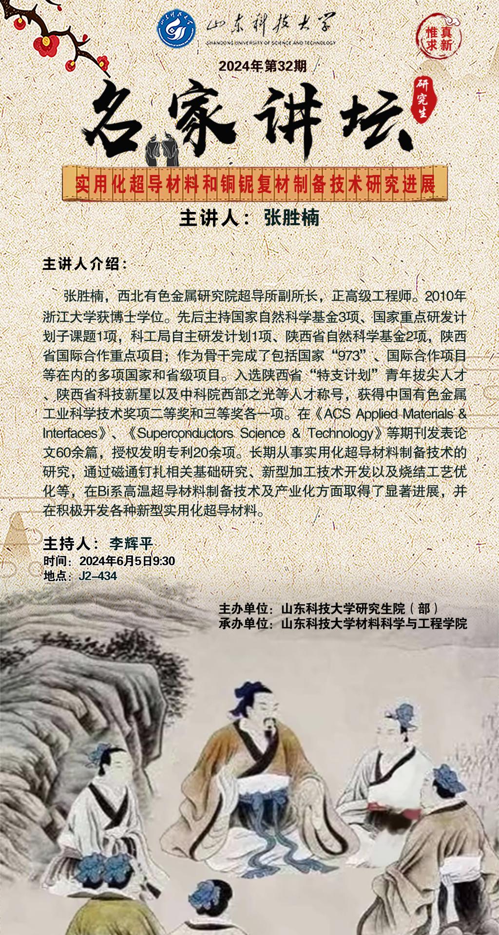 “名家讲坛”2024年第32期:实用化超导材料和铜铌复材制备技术研究进展(总926期)