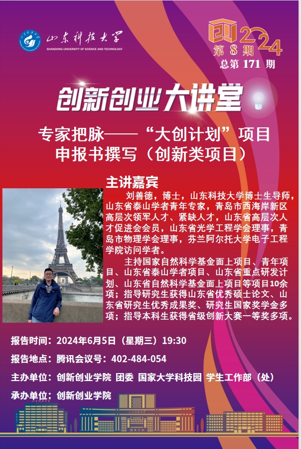 创新创业大讲堂2024年第9期:专家把脉“大创计划”项目申报书撰写(创业类项目)