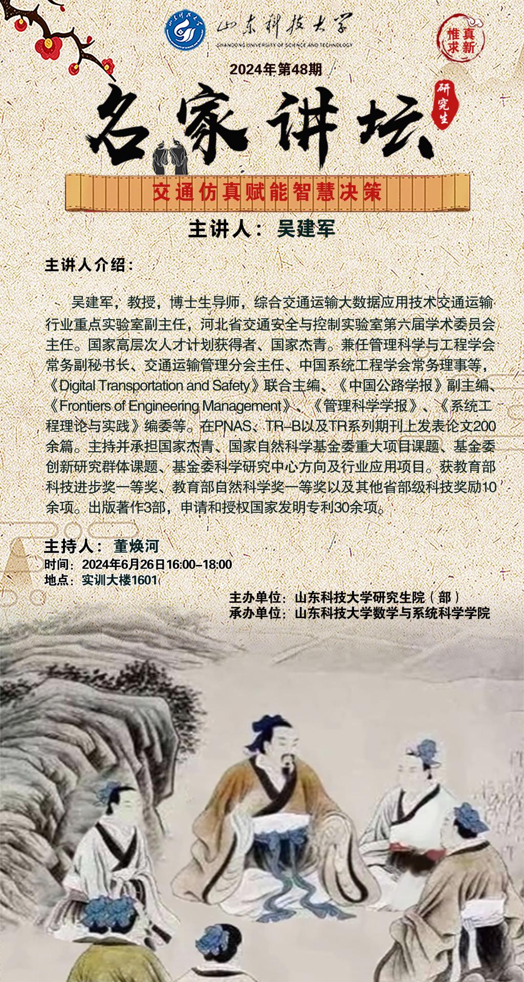 “名家讲坛”2024年第48期:交通仿真赋能智慧决策(总942期)