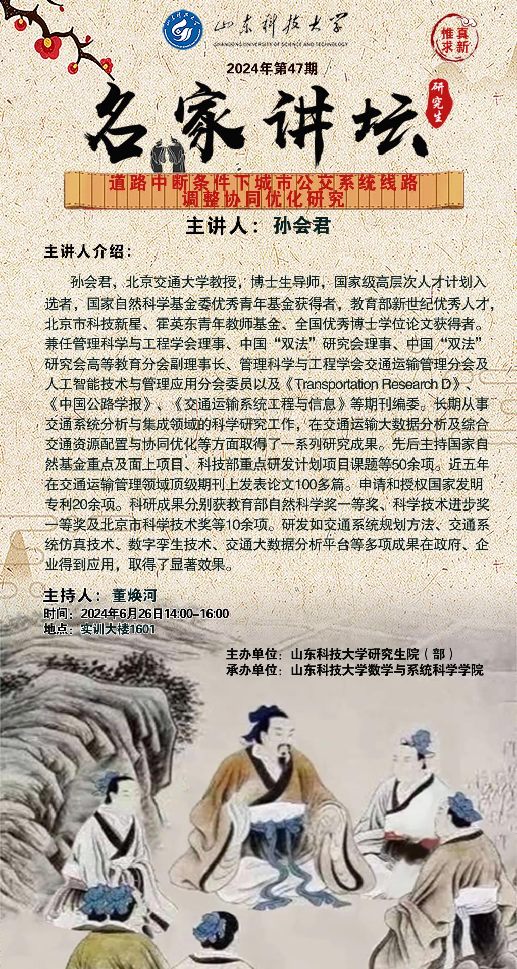 “名家讲坛”2024年第47期:道路中断条件下城市公交系统线路调整协同优化研究(总941期)