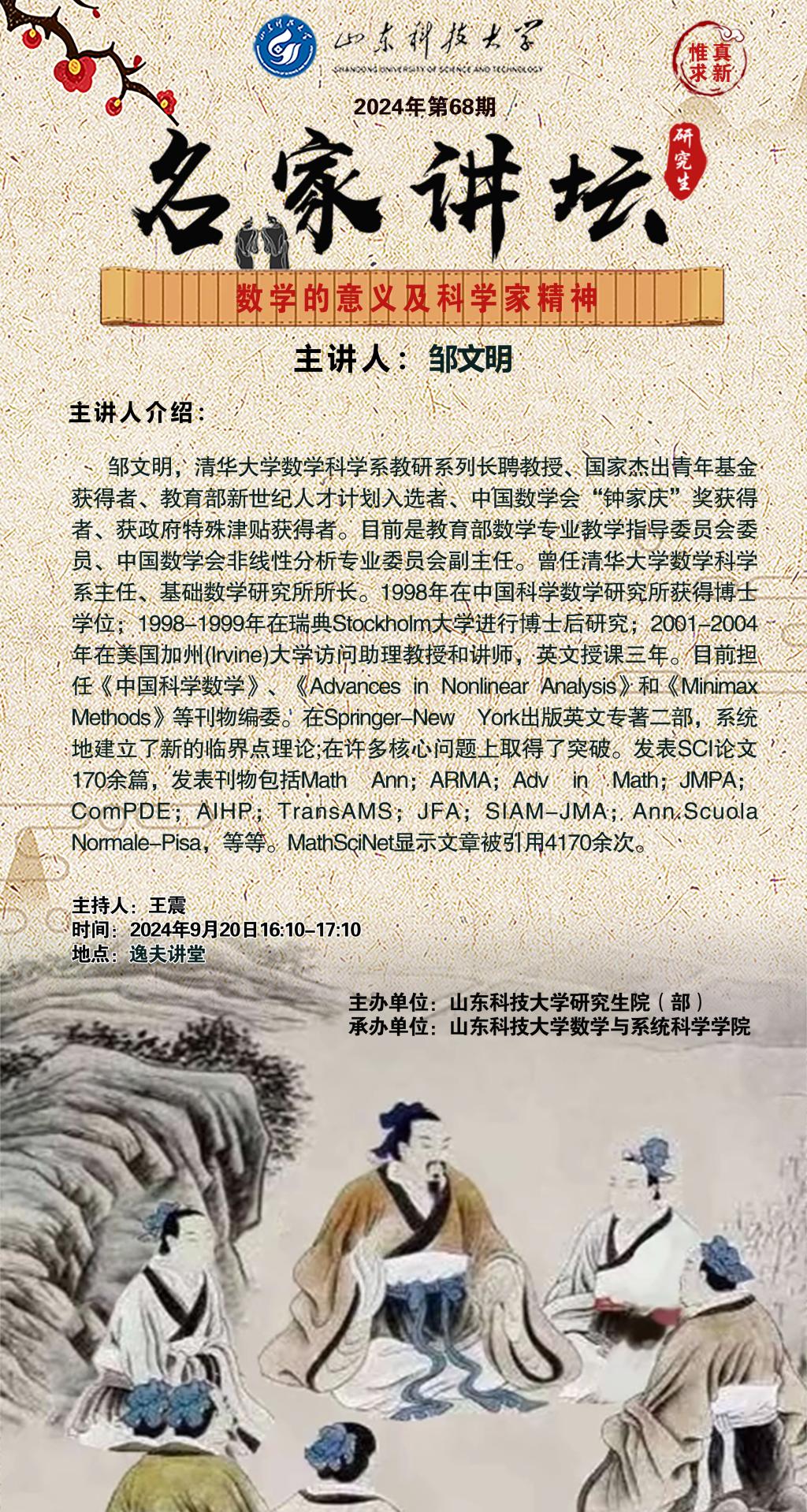 “名家讲坛”2024年第68期:数学的意义及科学家精神(总962期)