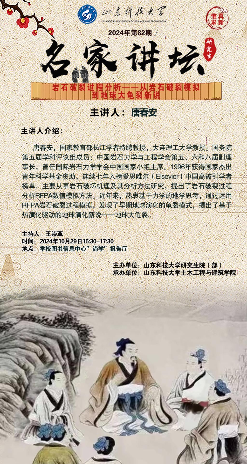 “名家讲坛”2024年第82期:岩石破裂过程分析--从岩石破裂模拟到地球大龟裂新说(总976期)