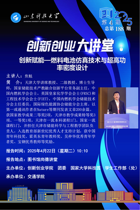 创新创业大讲堂2025年第4期(总第188期):创新赋能—燃料电池仿真技术与超高功率密度设计
