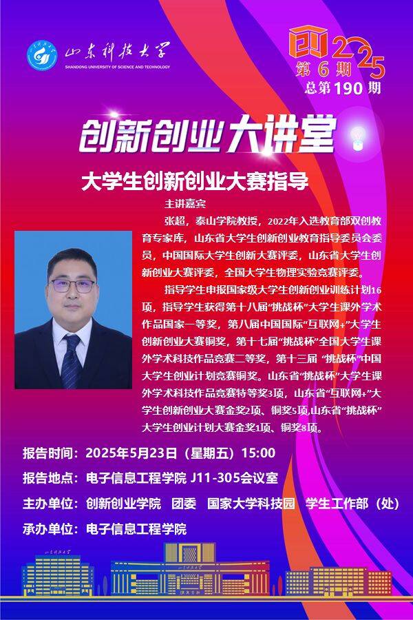 创新创业大讲堂2025年第6期总第190期:大学生创新创业大赛指导
