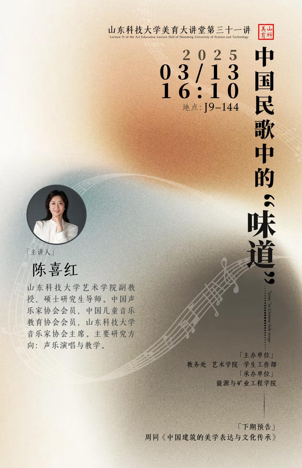 【山科美育】拼搏平台(中国)ios/安卓版/手机app下载美育大讲堂第三十一讲《中国民歌中的“味道”》