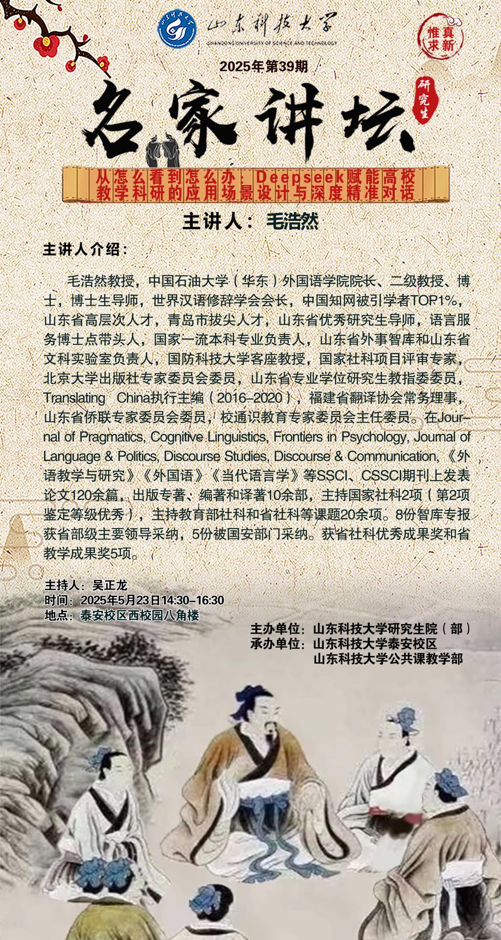 “名家讲坛”2025年第39期:从怎么看到怎么办-Deepseek赋能高校教学科研的应用场景设计与深度精准对话(总1044期)
